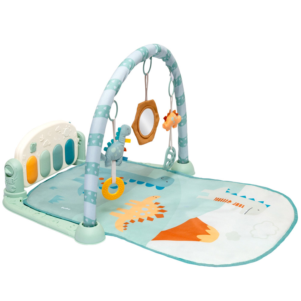 Coloque o bebê deitado com os pés direcionados para o piano. Ao mexer as perninhas, ele toca as teclas e se diverte com diferentes sons e músicas. Possui um arco com 2 brinquedos e 1 espelho posicionados na distância ideal para a visão e o toque do bebê, estimulando a coordenação motora. Os brinquedos podem ser removidos do arco e presos ao carrinho ou oferecidos separadamente ao pequeno. O piano também pode ser colocado no berço ou entregue ao bebê para brincar sentado.