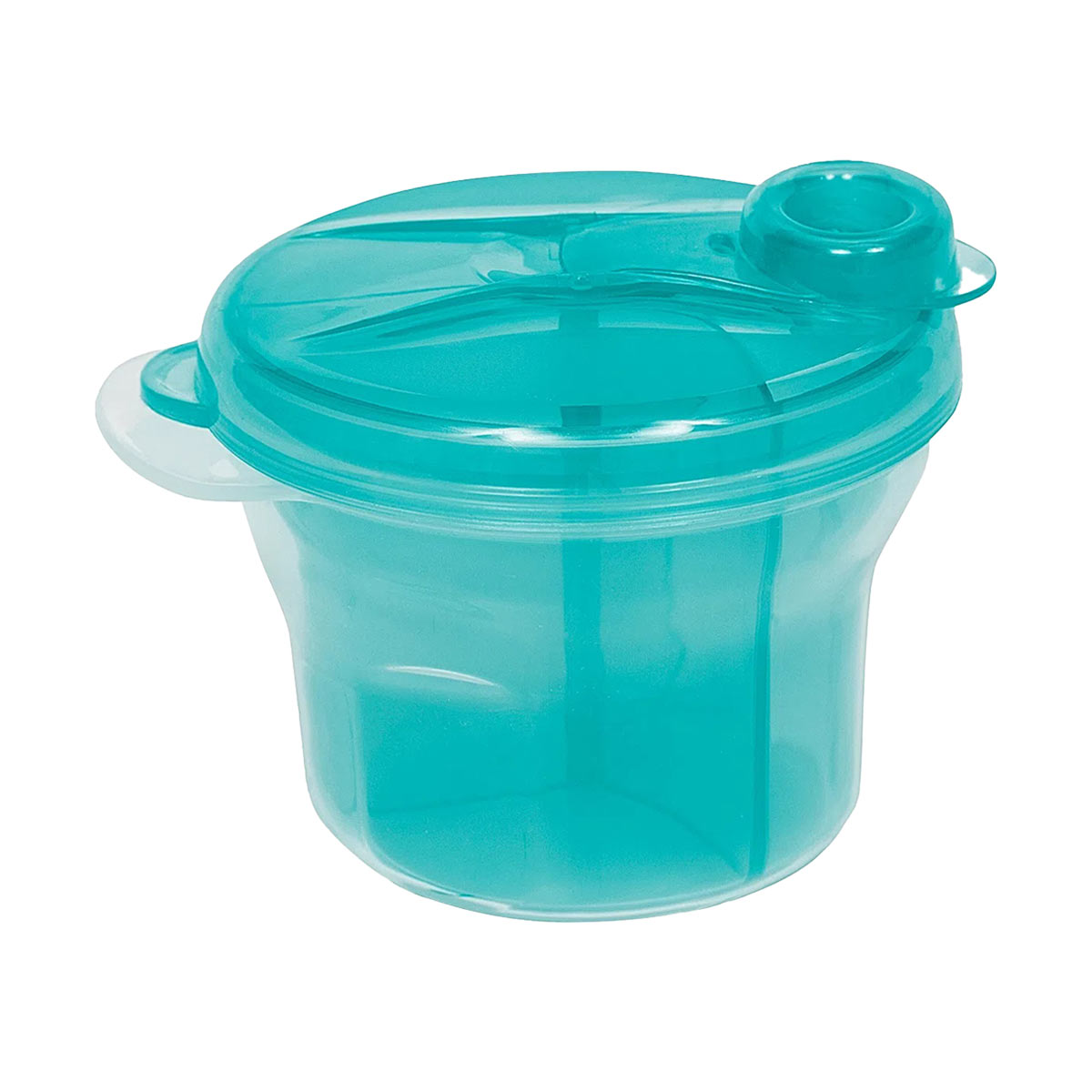 O pote com tampa dosadora para leite em pó da Buba conta com divisória com 3 compartimentos removível, ideal para carregar na bolsa.